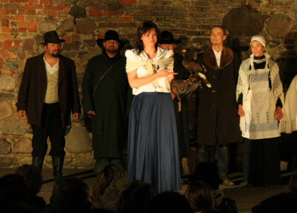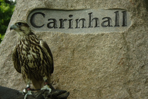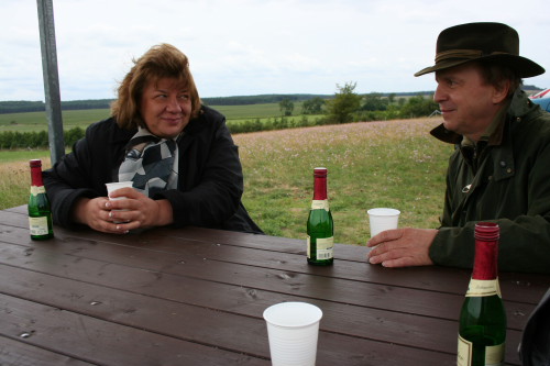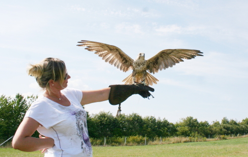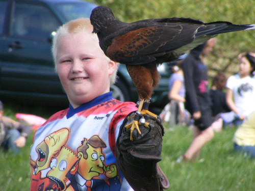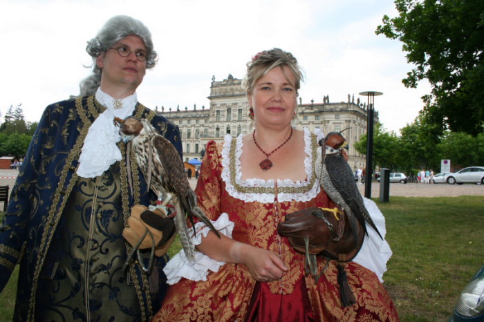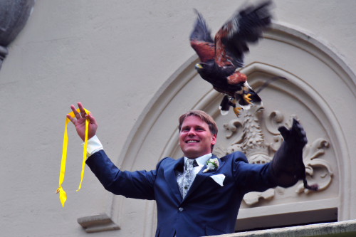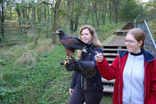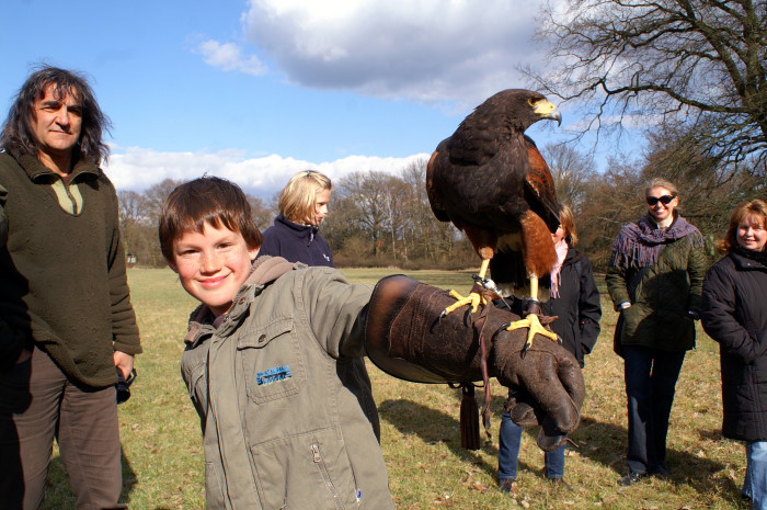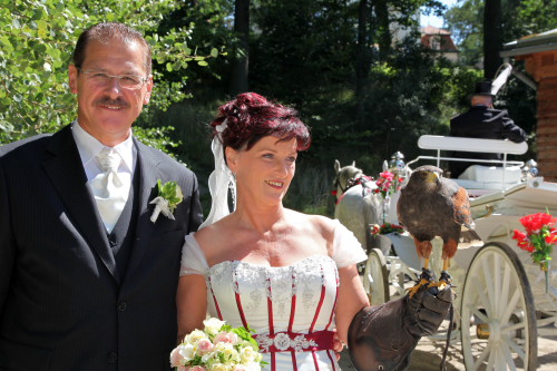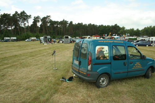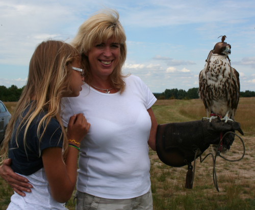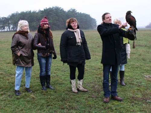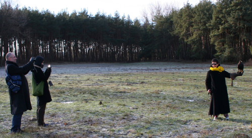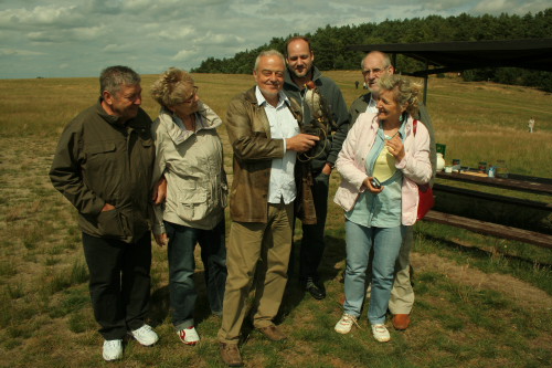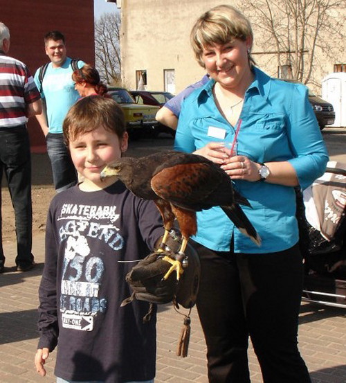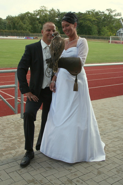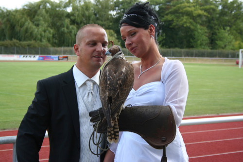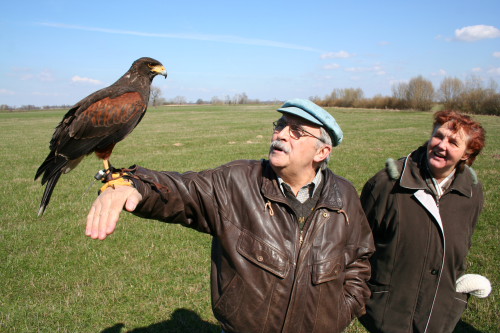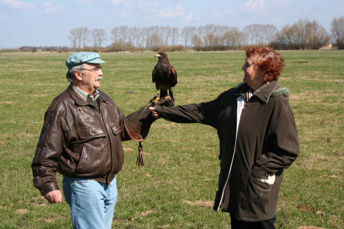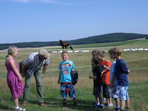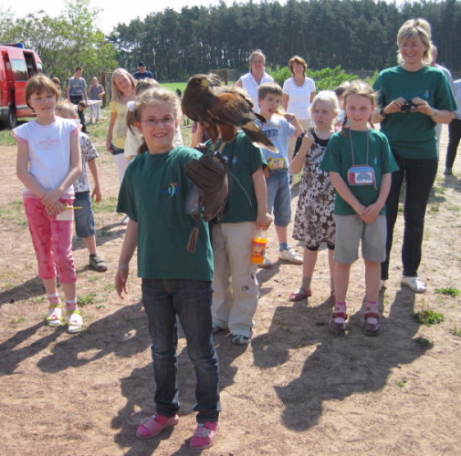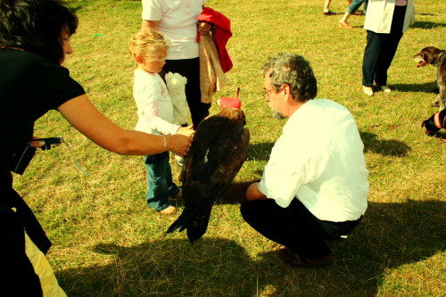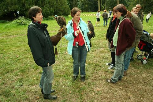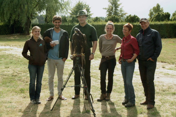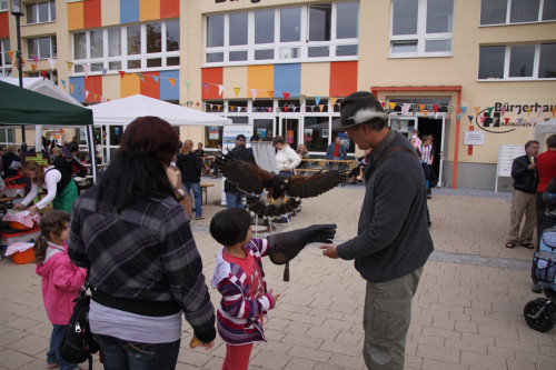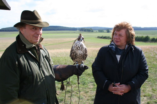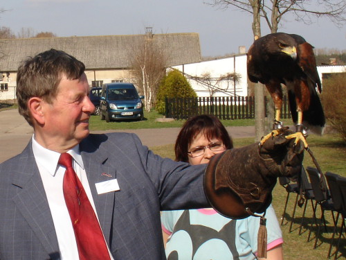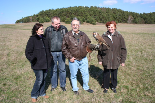 Der Bürgermeister von Stölln Herr Dahlmann mit Steinadlerterzel und Gästen.