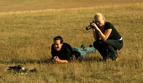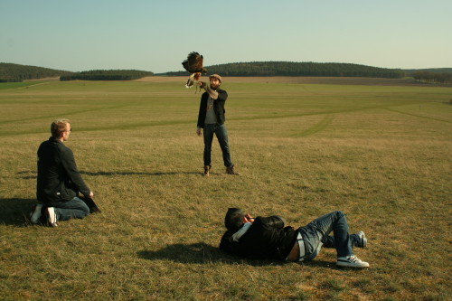 Dreharbeiten zum Film ``Jagdgründe``mit Wanderfalkenterzel