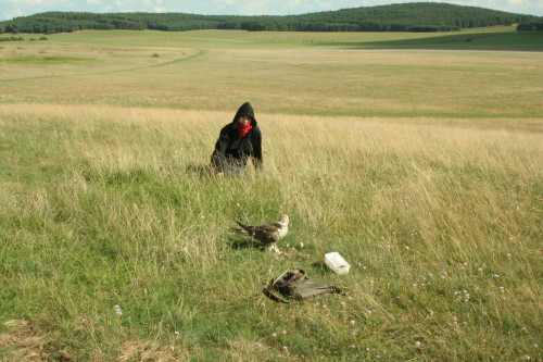Nach 1 Std. kam der Sakerfalke aus dem Himmelsblau zurück.