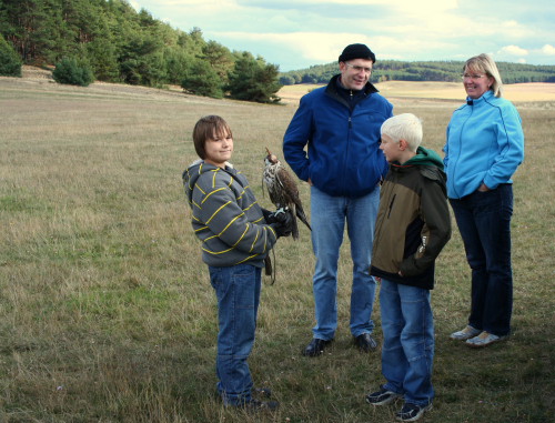 Familie Teubner mit dem Ausreißer. ( Wanderfalkenterzel )